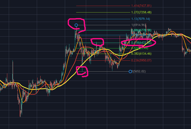 위쪽에 저 점이 아까 적혀있는 거랑 이 고점이 적혀있는 거랑 피보나치를 다시 뽑아주세요